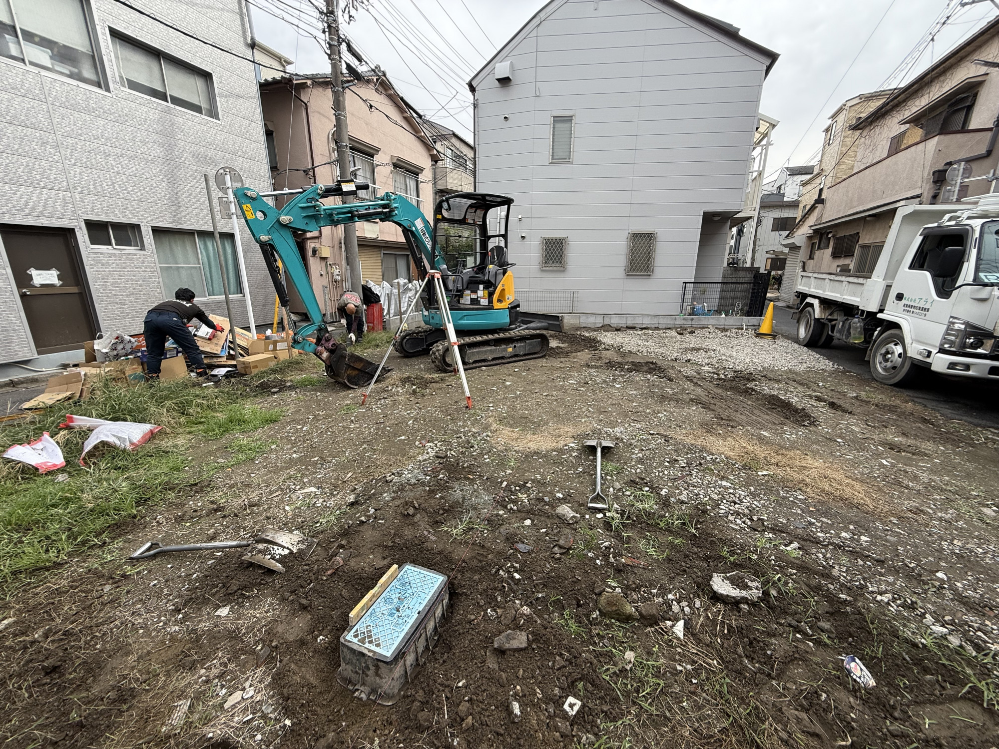 人力舗装 1日施工です。施工人数7人(自社ダンプ3人込み)